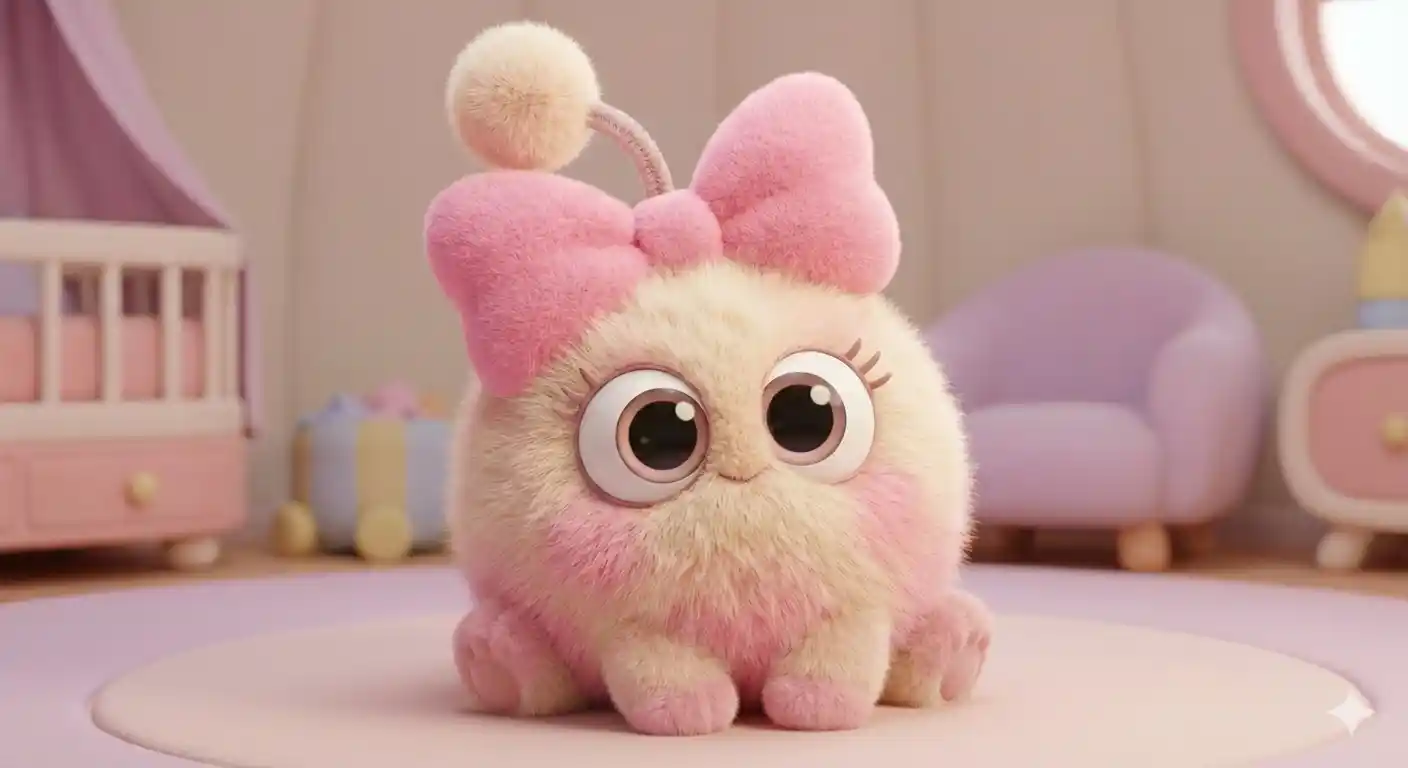 Miimou is the audience: eager, non-verbal, and full of wonder. A soft, spherical toddler-creature who communicates through giggles, coos, and expressive bounces.
